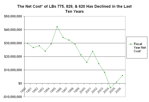 can be seen from the chart, the net cost of LBs 775, 829, and 620